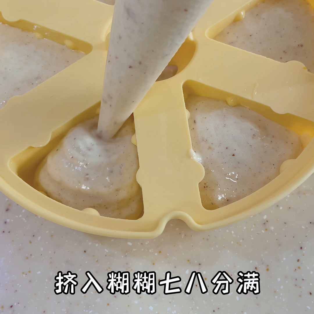 ·雪梨蒸糕:松软香甜,雪梨切块,50克雪梨,1枚鸡蛋,4颗红枣,辅食机打发3分钟出现密集气泡,加25克低筋面粉,充分搅拌,装入裱花袋,模具刷油,挤入糊糊七八分满,轻震两下,扣上盖子,冷水上锅蒸25分钟,焖5分钟。