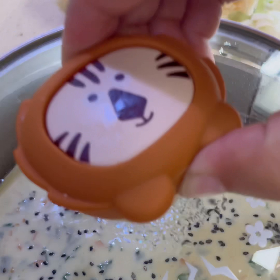 ·莲藕肉丸:莲藕20克,半颗蛋清,放入辅食机搅打,玉米炒粉5克,少许松鲜鲜提味,淋一圈亚麻籽油,搅拌上劲,不管用什么办法做成丸子即可。装盘,葱香酥脆。