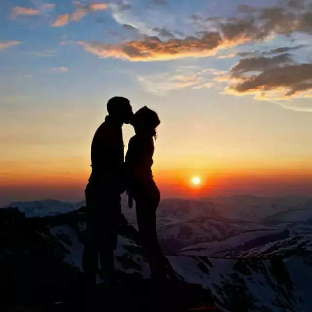 不过拍摄这种情侣照难度有点大,一是需要光线好,二是拍摄场景的要求。现在在大都市里,要找个光线好、环境好、人少的地方拍情侣照是非常难的。至于怎么拍剪影前面讲过了,不过拍这种情侣照剪影照需要注意一点:两人亲吻时,面部不要贴的太过紧了,不然脸部的轮廓美展现不出来,两个人头部会变得一片漆黑。