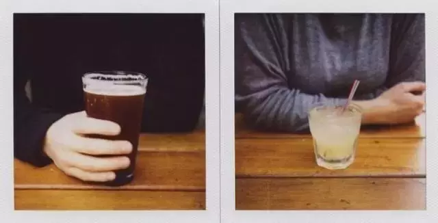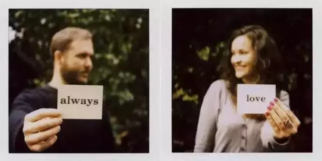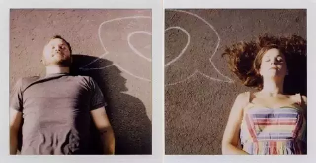 这也是互拍,但是和上面那对情侣的互拍有所不同。这对情侣不是在同一时刻为彼此拍照,而是在同一场景中,两人分位于场景的左右两边,然后用宝丽来相机拍下来。最后将拍下来的照片合在一起,这样就成为了一个完整的时刻。