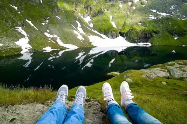 这种拍情侣照的方式不仅十分文艺,而且还有着非常美好的寓意。虽然和上面拍脚很相似,但是这种拍照方式更有意境、更亲密。如果你们两个都是大长腿,那么拍出来的效果会更好。