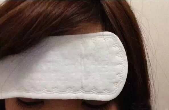 户外野营时突然发烧怎么办!可以用冷水浸湿卫生棉,贴在额头上有降温功效哦。