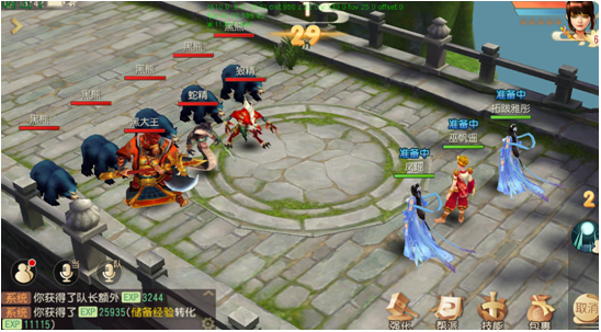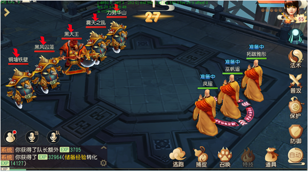 一段动画后进入第三关。主怪无敌,打败四个小怪即可获胜。要注意的是主怪会使用死亡的小怪的技能。小怪里面力劈华山伤害较高、震天之吼会抽蓝,比较厉害。