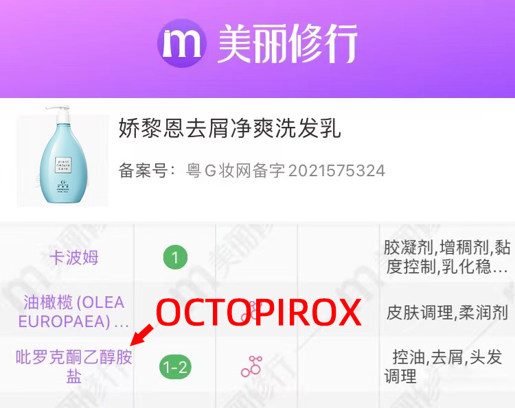从娇黎恩官方客服那了解及网上一些相关报道介绍,并在国家药监局备案网查询娇黎恩去屑洗发水的备案信息,(备案成分图)据我多年对去屑成分的心得,这款娇黎恩洗发水去屑止痒的成分是大名鼎鼎的OCTOPIROX,瑞士科莱恩研发的最新型水溶性胺去屑剂,这里简单划重点,OCTOPIROX和传统去屑剂能力比对是最高的,刺激性是最低,价格是去屑原料界的天花板的天花板。之所以我分享这些,主要是用了一次就感觉有效果,接来下我会用使用记录的方式,看看娇黎恩的去屑洗发水能不能让我多年的头屑头痒问题解决(或者得到控制)