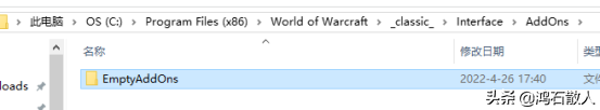 根据插件创建规则,插件必须放在InterfaceAddOns目录下,我们找到在魔兽世界安装目录下的的这个目录 World of Warcraft_classic_InterfaceAddOns ,在目录下建立插件的目录 名为:EmptyAddOns