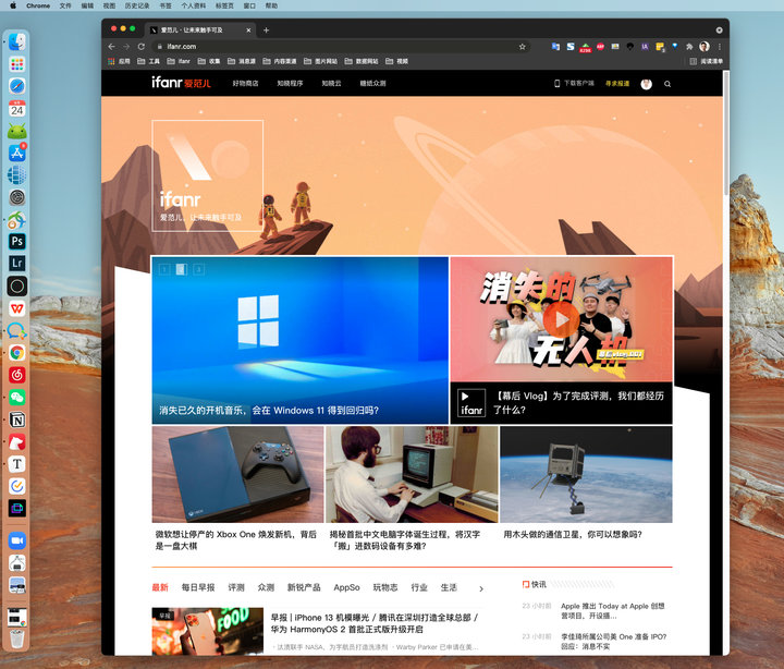 ▲ 外接扩展显示器的我也习惯将 dock 放在侧边,鼠标向右滑动就可以转到副屏